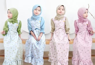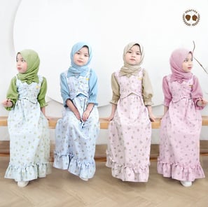 Bahan crinkle, nyaman, tidak mudah kusut, Korean style. Include hijab, tersedia 8 warna. Ukuran 1-14 tahun. Toleransi ±2 cm.