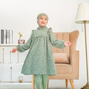 Bahan katun rayon, adem & nyaman. Flat button, rempel cantik, dan ujung tangan elastis (wudhu friendly). Ukuran S-4XL (1-14 tahun). Toleransi ±2cm.