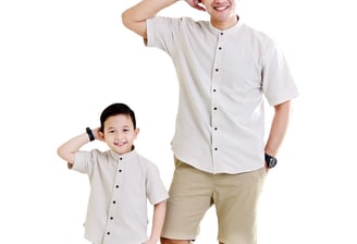 Bahan katun organik polos. Ukuran dewasa S-XXL, anak XS-XXL (1-12 tahun). Harga satuan, cocok untuk pakaian couple ayah & anak