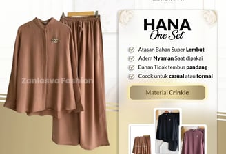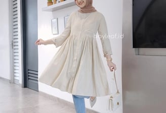 Bahan airflow crinkle, ringan & lembut. Hijab: P 85/120 cm, lingkar muka 52 cm. Abaya: LD 164 cm, P 138 cm. Pilihan dress atau hijab saja.