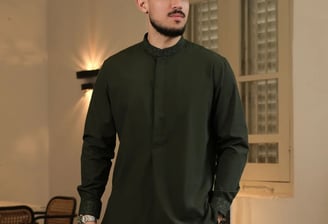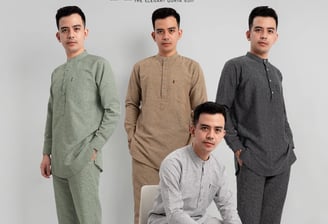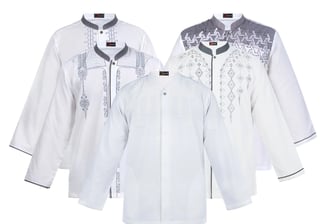 Kurta modern dengan bordir mewah, bahan Cotton CVC adem, rapi, dan tidak mudah kusut. Ukuran S-XXL (LD 106-122 cm, P 75-83 cm). Warna: Black, White, Green Army, Navy, Maroon, Sage, Mocca.