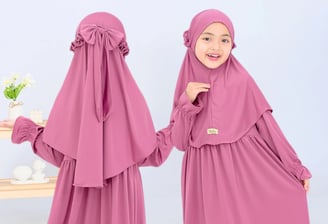 Bahan katun toyobo adem, warna soft elegan, ukuran 2-9 tahun (P 74-92 cm, LD 36-47 cm). Nyaman untuk ibadah & acara spesial. Toleransi ±2 cm.