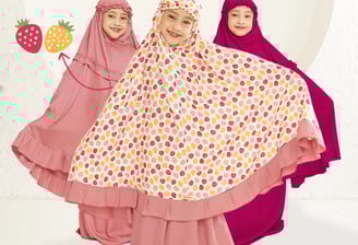 Bahan rayon premium, ringan & adem. Ukuran S-XL (1-9 th). Bonus tas mukena. Tukar size & garansi tersedia dengan syarat.