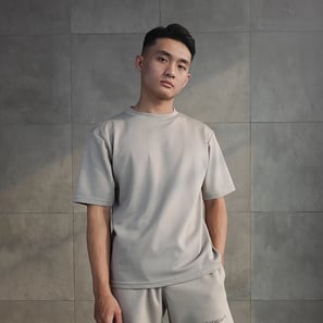 Lengan pendek, bahan premium waffle rib stretch. Ukuran S-XXL (LD 100-120 cm, PB 66-72 cm). Warna: Stone, Sage, Khaki, Broken White, Black.