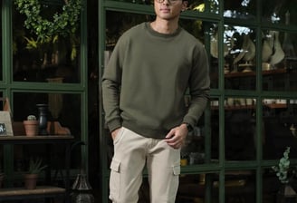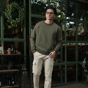 Bahan soft cotton fleece tebal & lembut, modern fit, logo elegan. Ukuran S-XXL (LD 106-122 cm). Warna: Black, Navy, Bronze, Green Smoke, Charcoal, Dark Army, Olive Green.