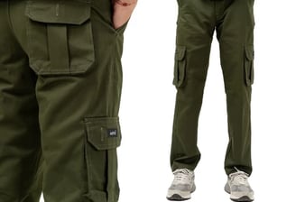 Slimfit, bahan cotton twill. Warna: Army, Black, Mocca, Navy, Cream, Darkgrey. Ukuran S-5XL (LP 76-104 cm). Toleransi ±2 cm.