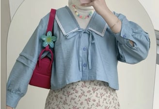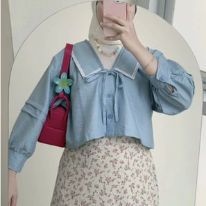Riri Crop Blouse, Kemeja stylish bahan polo linen, LD 106 cm, PB 44 cm, panjang lengan 39 cm. Simple dan chic!
