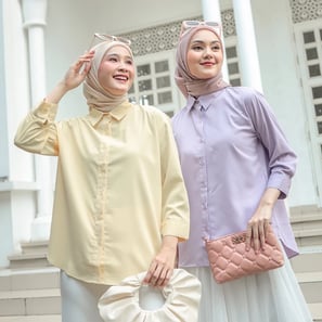 Bahan chiffon 3x lebih tebal, ringan, halus, flowy, dan tidak mudah kusut. Ukuran M-XL (LD 104-108 cm). Warna: Pink, White, Blue, Almond, Milo, Lilac, Lemon, Fuschia, Tosca, Teal, Black.