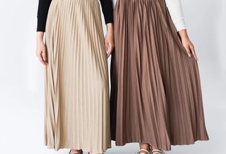 Rok plisket hyget premium, feminim & nyaman. All size fit to XL (Pinggang 30 cm, Panjang 93 cm, Lebar bawah 130 cm).