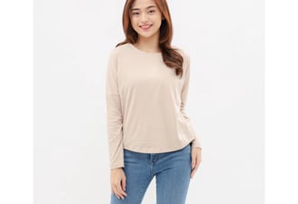 Kaos Loose Lengan Panjang: Hijab friendly, bahan cotton combed, jahitan rapi. Ukuran M-XL (LD 106-118 cm, PB 53-57 cm). Toleransi ±5%.